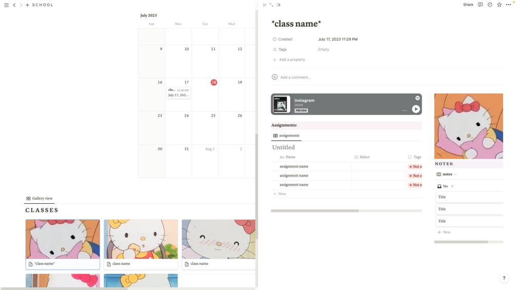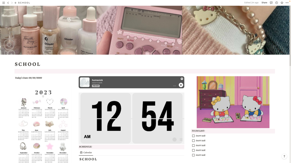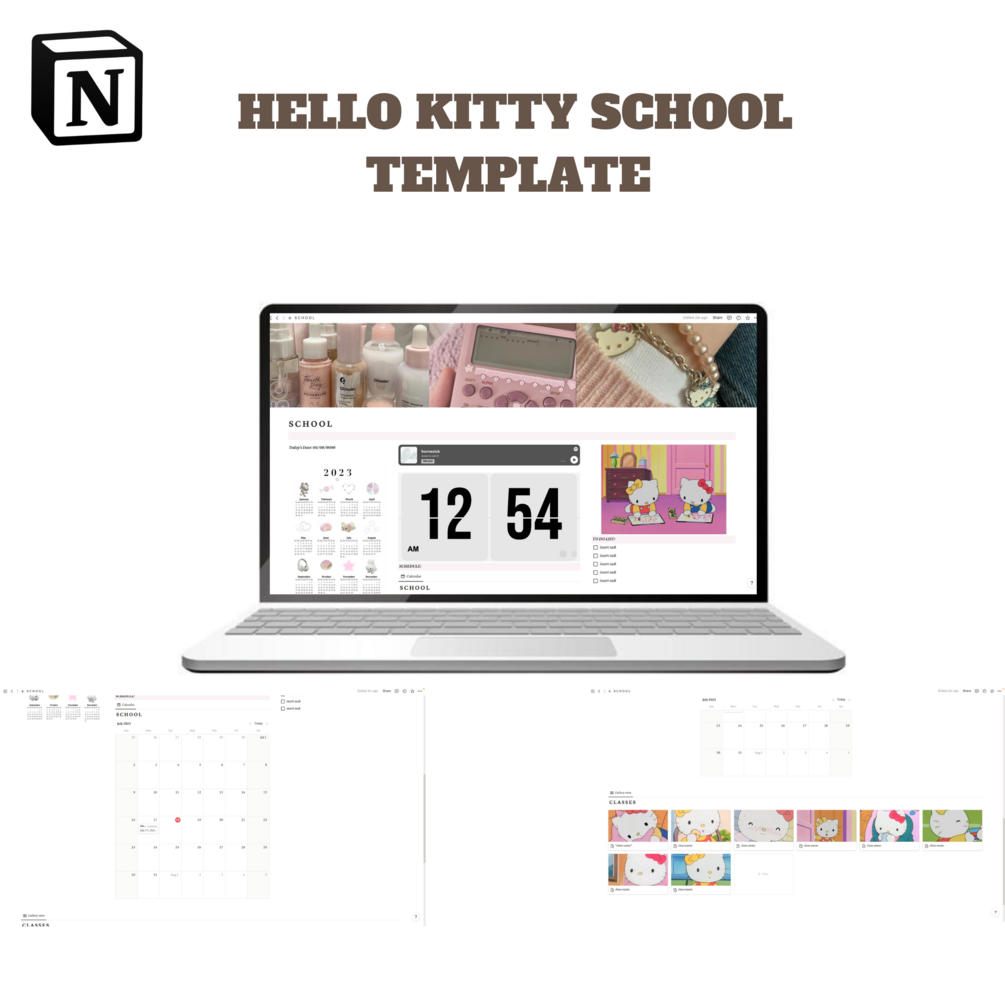 This template features characters, "Hello Kitty" and her sister "Mimi." It has music, calendars and classes trackers. The purpose is to help the user stay organized and increase their productivity.