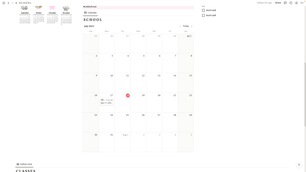 The calendar allows the user to keep track of their classes and its times.