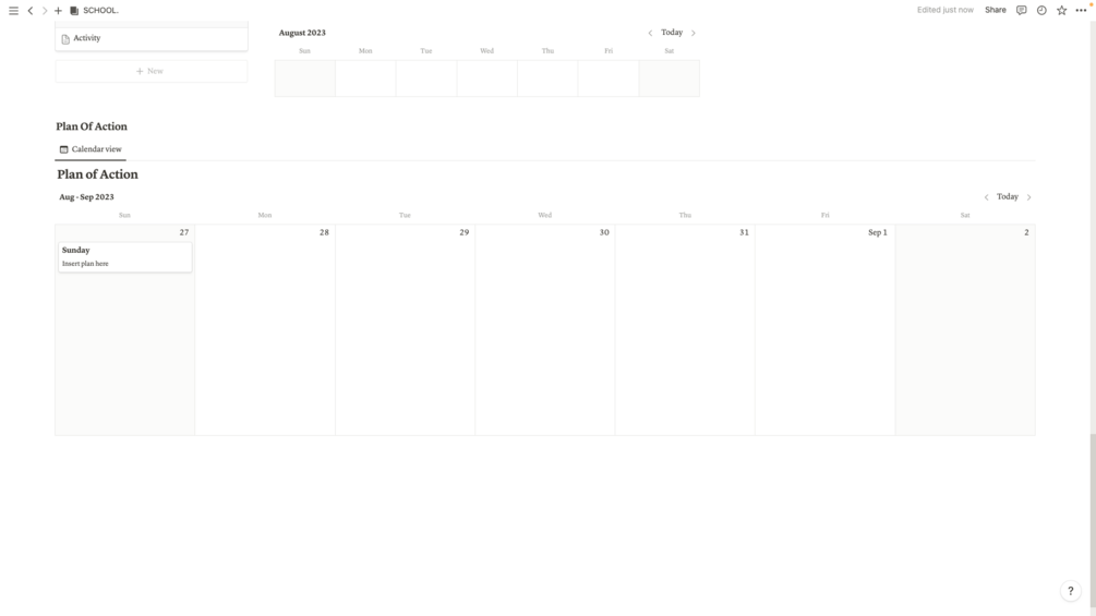 A weekly plan for extracurricular activities and school.